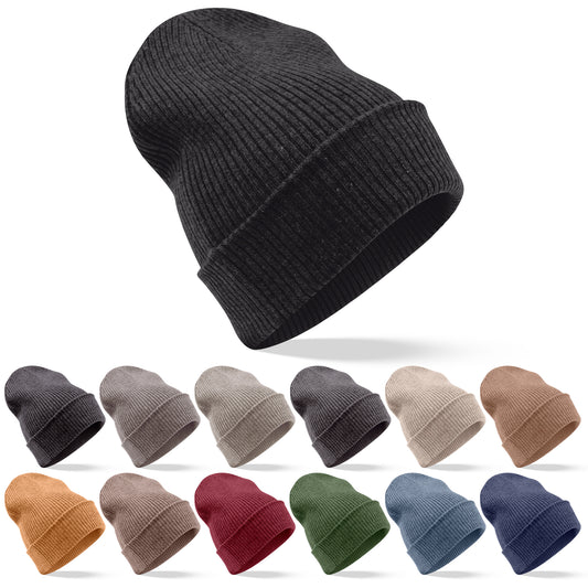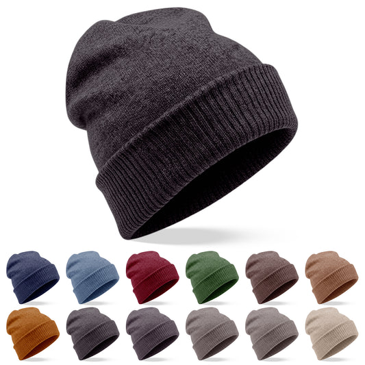 Kaschmir Mütze Beanie gerippt mit Umschlag