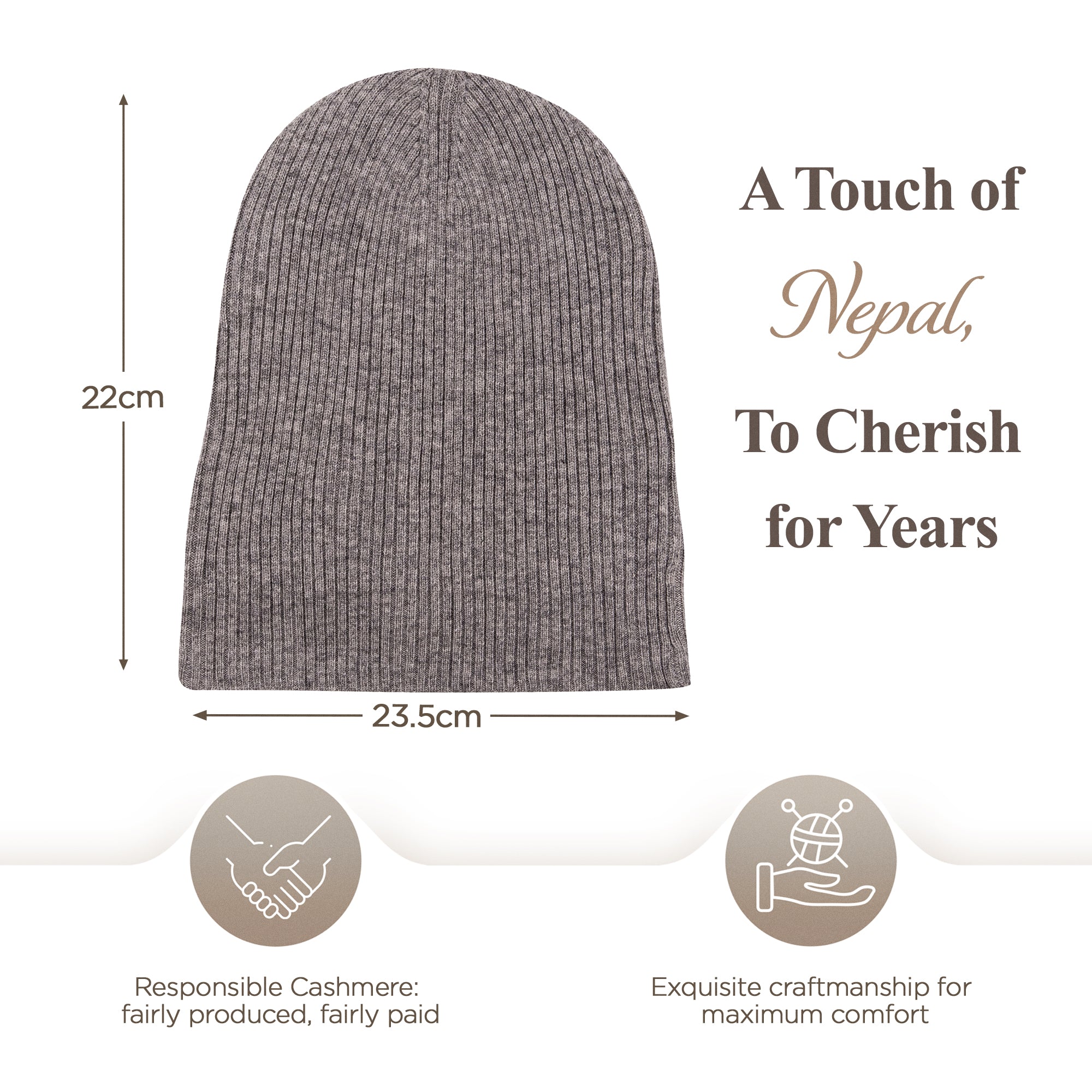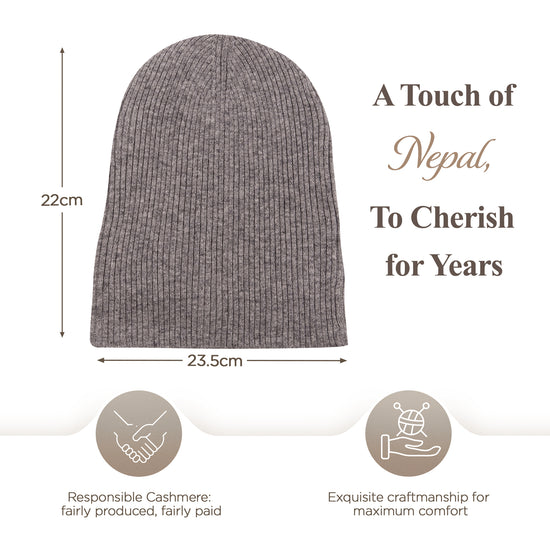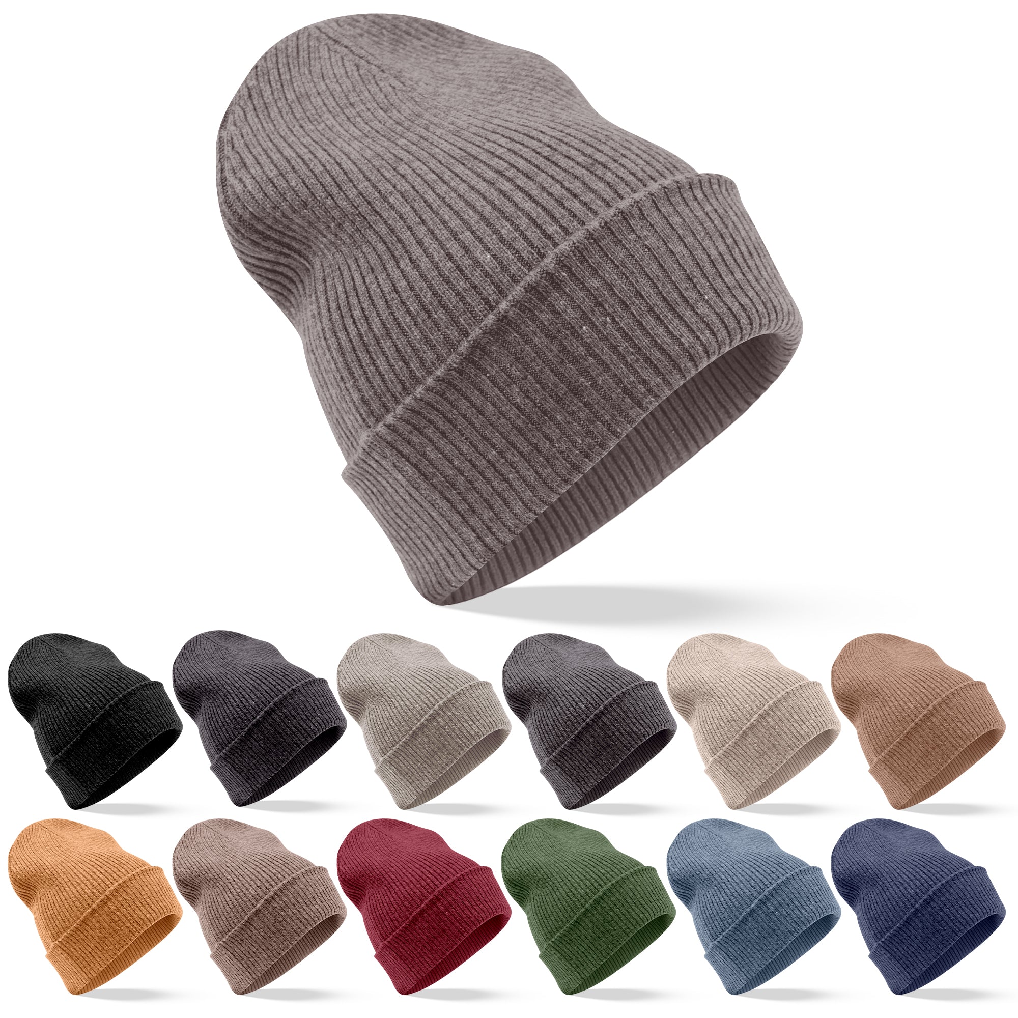 Kaschmirmütze Beanie gerippt mit Umschlag - Grau