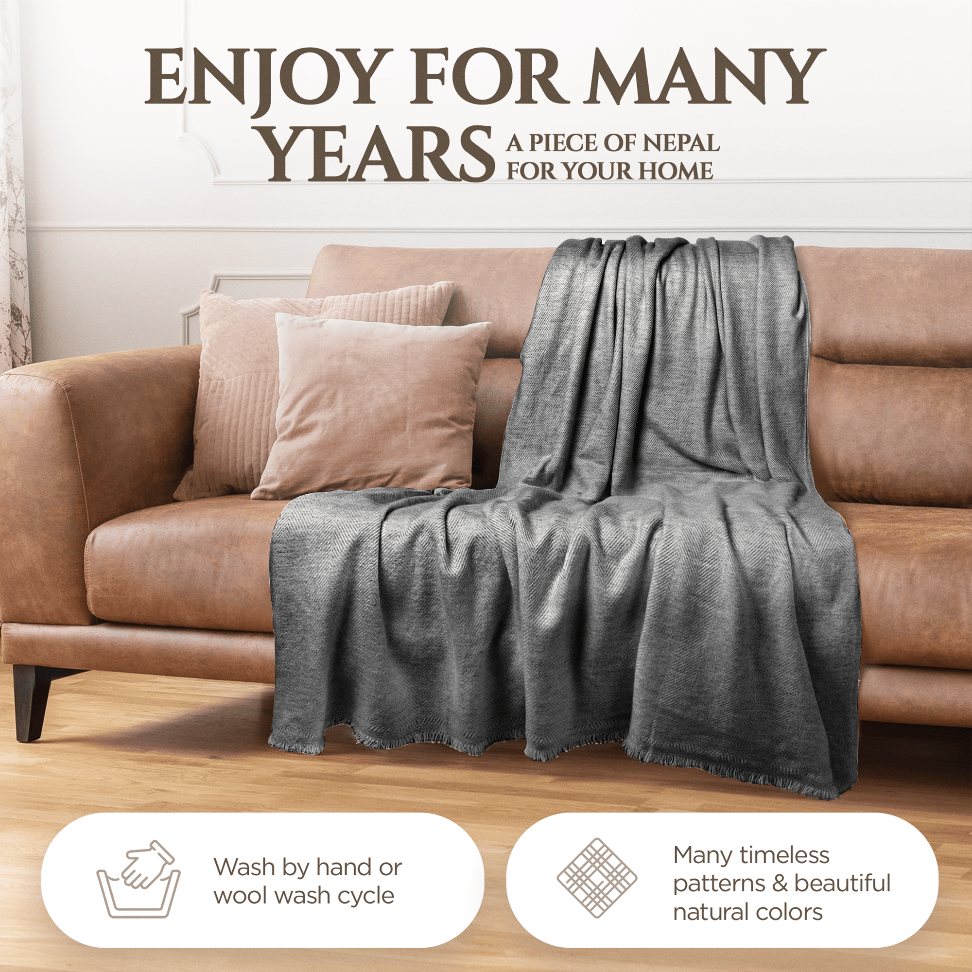 Kaschmirdecke grau mit feinem Fischgrätenmuster