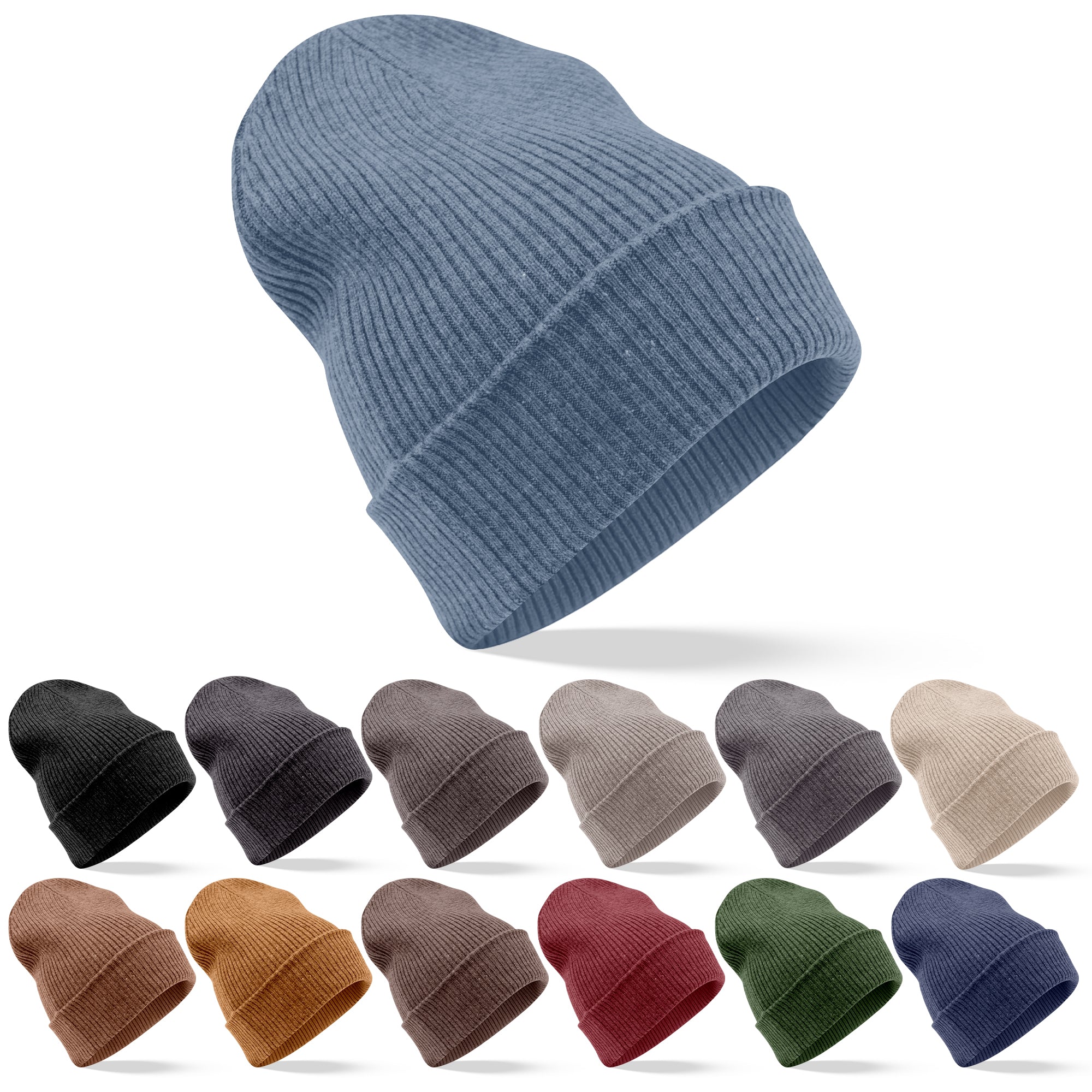 Kaschmirmütze Beanie gerippt mit Umschlag Blau